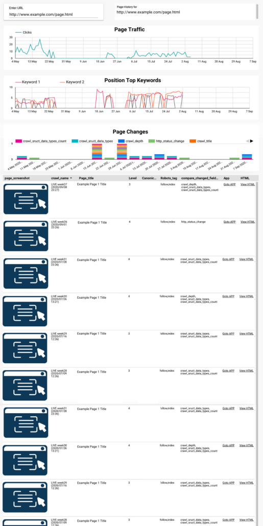 The rendered HTML as received by our crawler is saved and can be used for change analysis